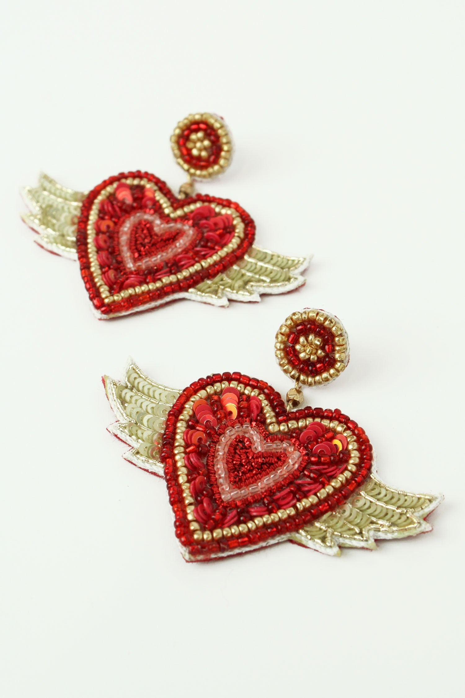 Perfectly on-trend for the new season – our flying heart motif has been intricately embellished using glass beads onto a lightweight faux-suede backing.