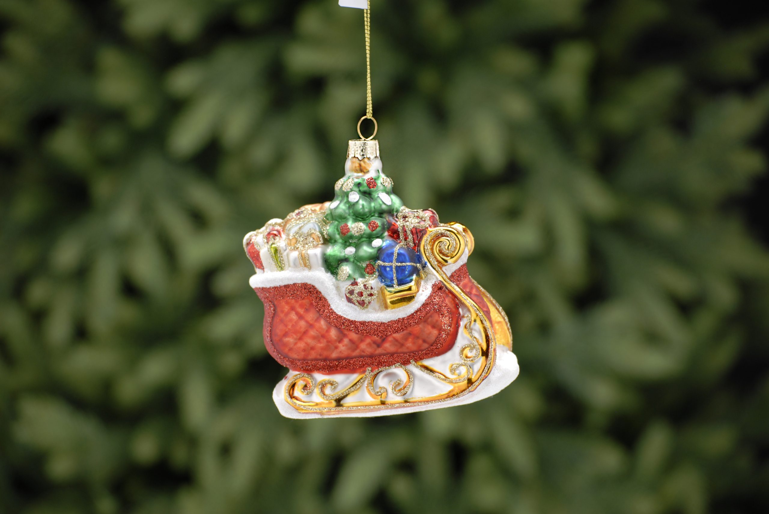 11cm glass sleigh with presents and tree