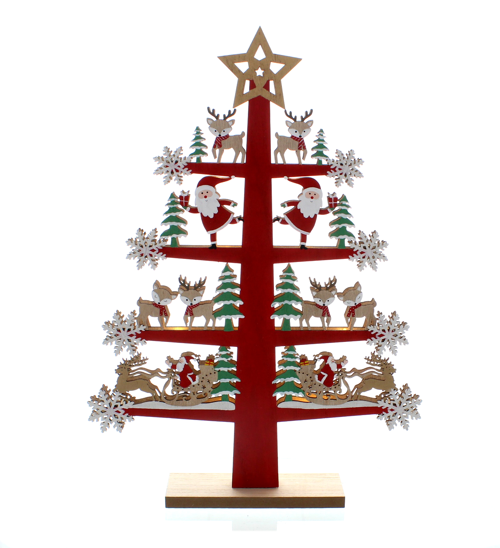 46cm wooden laser cut red/green/white tree with battery lights