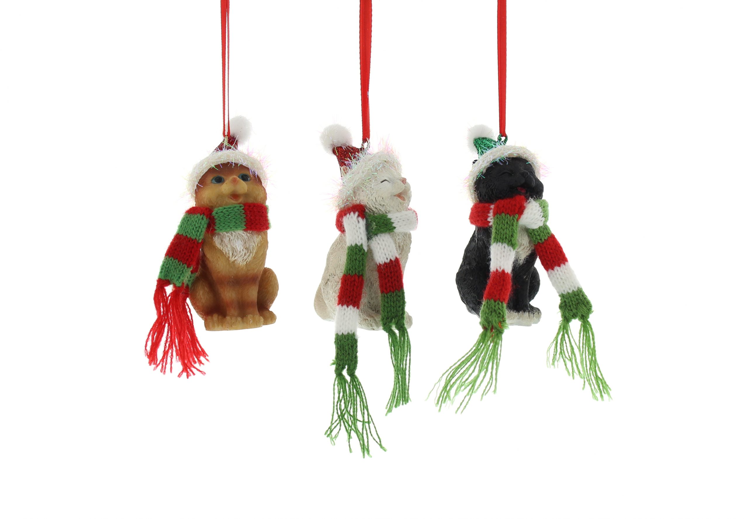 9cm cats with hats and scarfs hanging decoration – ginger, white and black cat