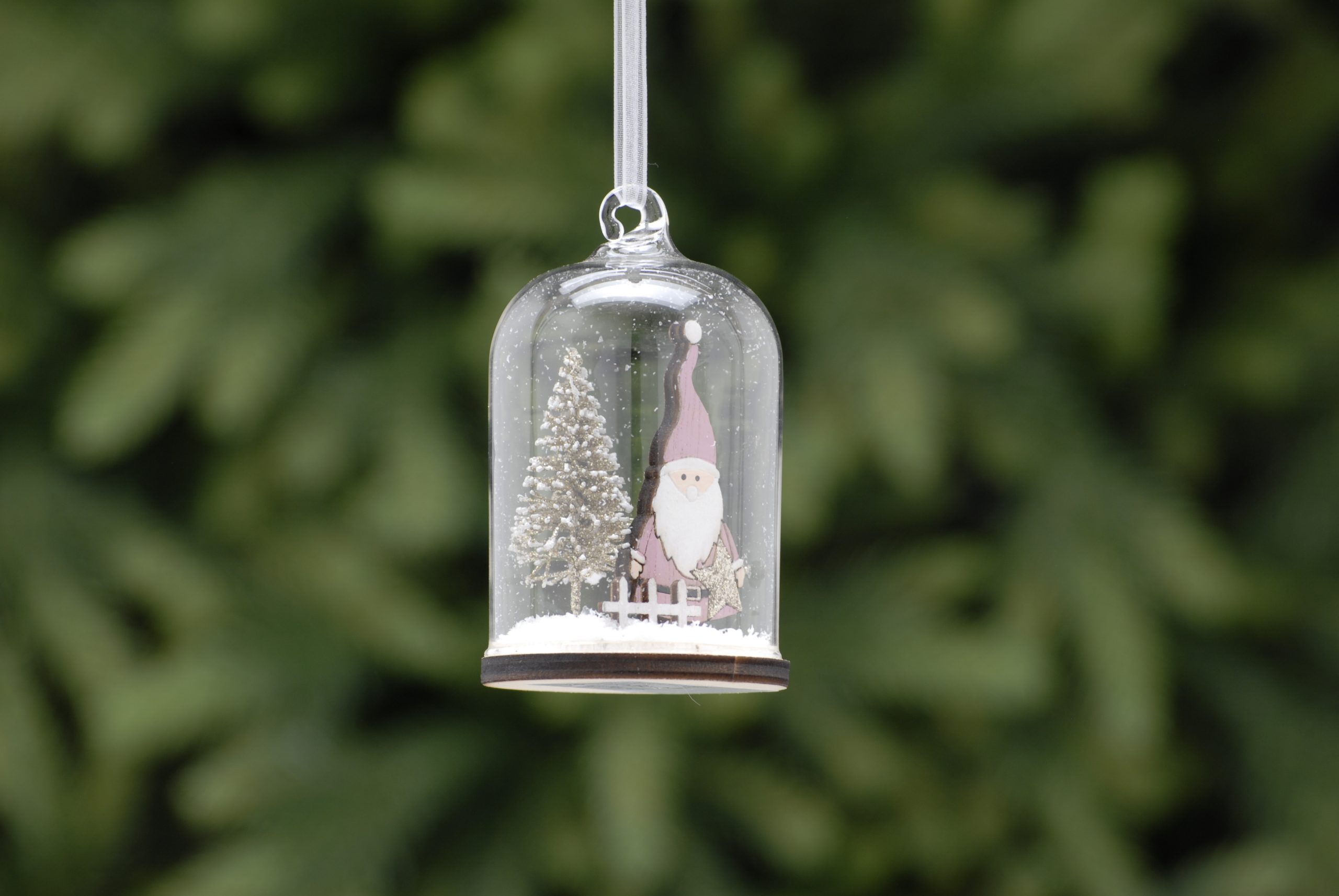9cm wooden pink santa wit tree inside glass dome