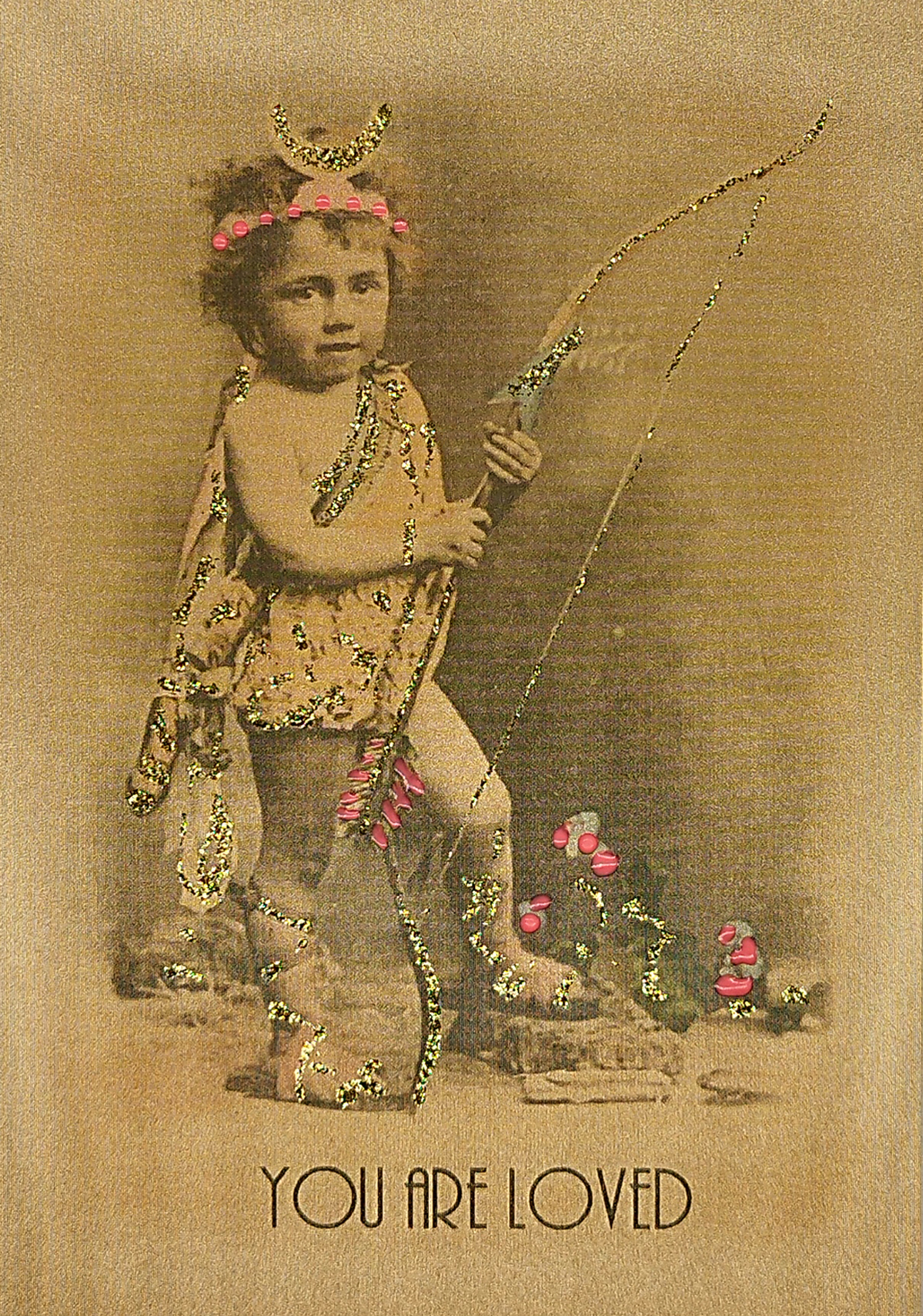 Vintage postcard images individually printed onto shimmering board and then HAND PAINTED and embellished with crystals. Each card is supplied with a complementing envelope.